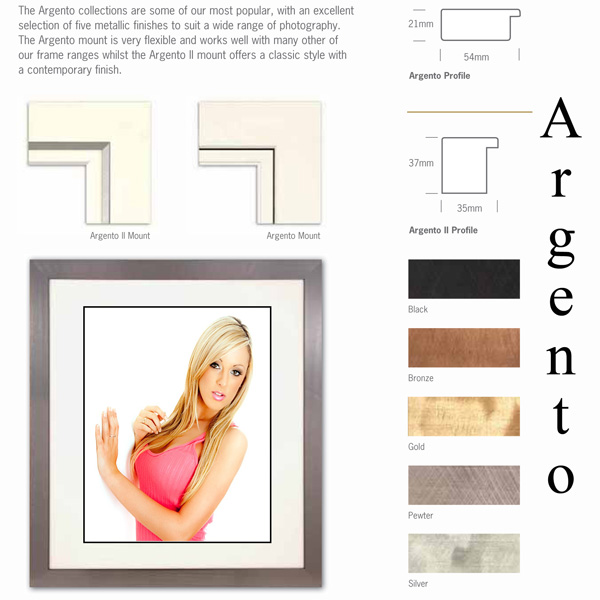 The Argento collections are some of our most popular, with an excellent selection of five metallic finishes to suit a wide range of photography. The Argento mount is very flexible and works well with many other of our frame ranges whilst the Argento II mount offers a classic style with a contemporary finish.